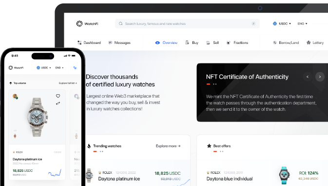 WatchFi acts as a bridge between the physical luxury and digital crypto world by enabling watch owners to generate NFTs representing their luxury watches. These NFTs can then be listed on our marketplace.